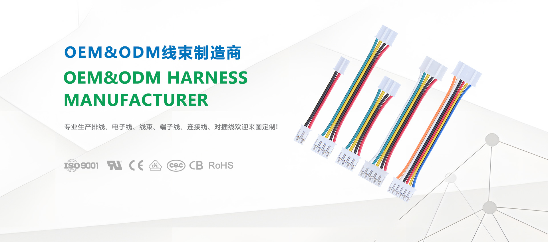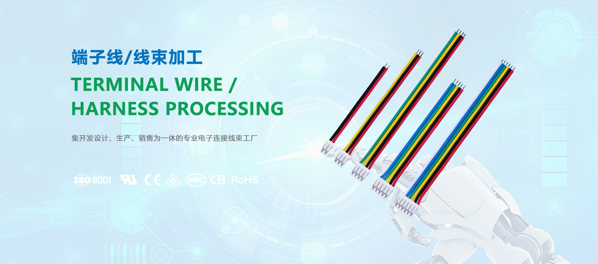 公司于2014年创办工厂 ,坐落在中国经济发达之一的广东省东莞市黄江镇是一家集产品开发设计、生产、销售为一体的专业电子连接线速工厂;产品种类主要有Wafer、Housing、Terminal、Header Connector、Wire Harnesses、Cable/Flat Cable线束及电缆等。广泛用于汽车电子、智能机器人、家电和办公设备